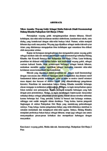 | Uncontrolled Keywords: | wayang golek; Media dakwah; fenomenologi; Padepokan Giri Harja 2 Putu |