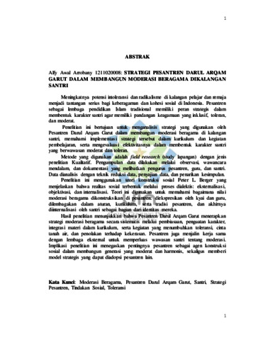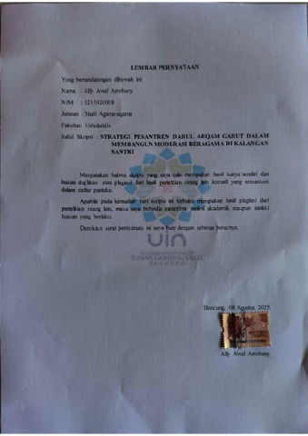 arrobany, alfy awal (2025) Strategi : Pesantren Darul Arqam Garut dalam membangun moderasi beragama di Salangan Santri. Sarjana thesis, UIN Sunan Gunung Djati Bandung.