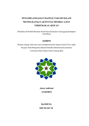 Pengorganisasian majelis taklim dalam meningkatkan aktivitas membaca dan terjemah Al-Qur'an: Penelitian di Pondok Pesantren Nurul Iman Kecamatan Cimanggung Kabupaten Sumedang