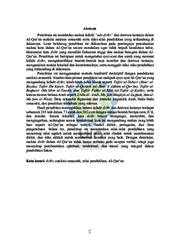 Uncontrolled Keywords: dzikr; analisis semantik; nilai pendidikan; Al-Qur’an
