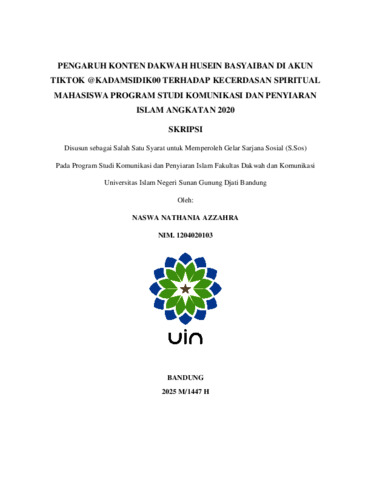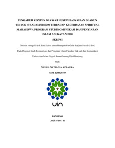 Azzahra, Naswa Nathania (2025) Pengaruh konten dakwah Husein Basyaiban di akun tiktok @kadamsidik00 terhadap kecerdasan spiritual mahasiswa program studi Komunikasi dan Penyiaran Islam UIN Sunan Gunung Djati Bandung angkatan 2020. Sarjana thesis, UIN Sunan Gunung Djati Bandung.