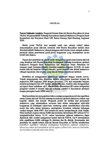 Pengaruh konten dakwah Husein Basyaiban di akun tiktok @kadamsidik00 terhadap kecerdasan spiritual mahasiswa program studi Komunikasi dan Penyiaran Islam UIN Sunan Gunung Djati Bandung angkatan 2020