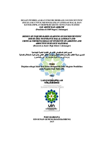 Kurmatillah, Laeli (2025) Desain pembelajaran inkuiri berbasis Socioscientific Issues (SSI) untuk meningkatkan literasi halal dan keterampilan berpikir kritis siswa pada materi Zat Aditif dan Adiktif. Masters thesis, UIN Suna Gunung Djati Bandung.