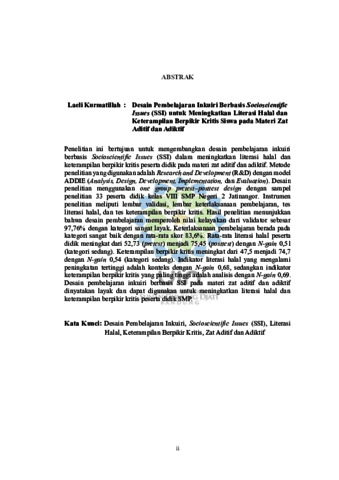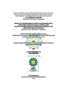 | Uncontrolled Keywords: | Desain pembelajaran inkuiri; socioscientific issues; literasi halal; keterampilan berpikir kritis; zat aditif dan adiktif |