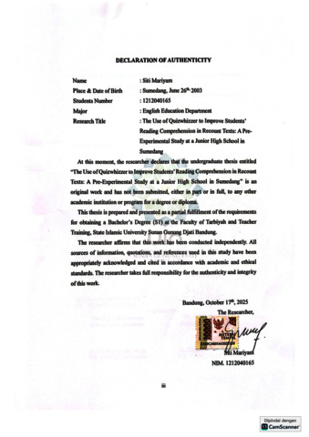 Mariyam, Siti (2025) The use of quizwhizzer to improve students’ reading comprehension in recount texts: A Pre-Experimental Study At A Junior High School In Sumedang. Sarjana thesis, UIN Sunan Gunung Djati Bandung.
