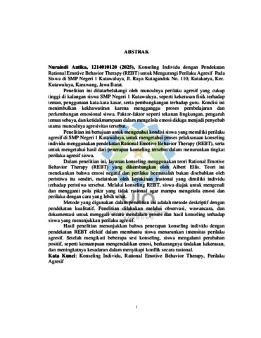 Antika, Nuraindi (2025) Konseling individu dengan pendekatan Rational Emotive Behavior Therapy (REBT) untuk mengurangi perilaku agresif pada siswa. Sarjana thesis, UIN Sunan Gunung Djati Bandung.