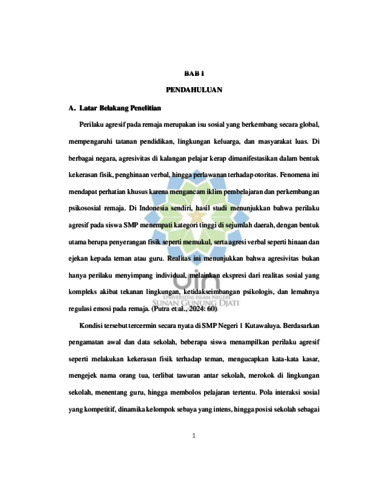 penelitian ini adalah metode deskriptif dengan pendekatan kualitatif. Penelitian dilakukan melalui observasi, wawancara, dan dokumentasi untuk menggali secara mendalam proses dan hasil konseling terhadap siswa yang menunjukkan perilaku agresif. Hasil penelitian menunjukkan bahwa penerapan konseling individu dengan pendekatan REBT efektif dalam membantu siswa menurunkan intensitas perilaku agresif. Setelah mengikuti beberapa sesi konseling, siswa mengalami perubahan positif, seperti kemampuan mengendalikan emosi, berkurangnya tindakan kekerasan, dan meningkatnya kesadaran dalam menyikapi konflik secara rasional.