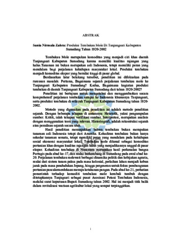 Zahra, Sania Nirmala (2025) Produksi tembakau mole di Tanjungsari Kabupaten Sumedang tahun 1920-2002. Sarjana thesis, UIN Sunan Gunung Djati Bandung.