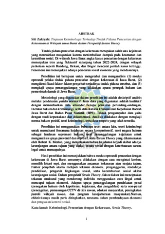 Tinjauan Kriminologis Terhadap Tindak Pidana Pencurian dengan Kekerasan di Wilayah Jawa Barat dalam Perspektif Strain Theory Tindak pidana pencurian dengan kekerasan merupakan salah satu kejahatan yang meresahkan masyarakat karena menimbulkan dampak pada keamanan dan ketertiban sosial. Di wilayah Jawa Barat angka kasus pencurian dengan kekerasan menunjukan tren yang fluktuatif sepanjang tahun 2022-2024, dengan wilayah perkotaan seperti Bandung, Bekasi, dan Bogor mencatat jumlah kasus tertinggi. Fenomena ini menunjukan adanya persoalan sosial ekonomi yang mendasarinya. Penelitian ini bertujuan untuk mengetahui dan menganalisis (1) modus operandi pelaku tindak pidana pencurian dengan kekerasan di Jawa Barat, (2) mengidentifikasi faktor-faktor penyebab terjadinya tindak pidana tersebut, dan (3) mengkaji upaya penanggulangan yang dilakukan aparat penegak hukum dan pemerintah daerah di Jawa Barat. Metodologi yang digunakan dalam penelitian ini adalah deskriptif analitis melalui pendekatan yuridis normatif. Jenis data yang digunakan adalah kualitatif dengan memanfaatkan data sekunder berupa peraturan perundang-undangan, literatur hukum dan kriminologi, serta data statistik kriminal dari Kepolisian Daerah Jawa Barat dan Badan Pusat Statistik (BPS). Teknik pengumpulan data yaitu dengan studi kepustakaan dan dokumentasi. Analisis dilakukan dengan mengkaji norma hukum positif, teori kriminologi, serta data empiris yang telah tersedia. Penelitian ini menggunakan beberapa teori antara lain, teori kriminologi untuk memahami fenomena kejahatan secara komprehensif, teori negara hukum sebagai landasan supremasi hukum, teori penanggulangan kejahatan untuk menganalisis upaya preventif dan represif, serta Strain Theory yang dikemukakan oleh Robert K. Merton, yang menjelaskan bahwa kejahatan terjadi akibat adanya kesenjangan antara tujuan yang diakui secara sosial dengan keterbatasan sarana legal untuk mencapainya. Hasil penelitian ini menunjukkan bahwa modus operandi pencurian dengan kekerasan di Jawa Barat umumnya dilakukan dengan cara mengintai korban, memilih lokasi sepi, dan menggunakan ancaman kekerasan atau senjata tajam. Faktor penyebab utama meliputi tekanan ekonomi, pengangguran, rendahnya pendidikan, pengaruh lingkungan sosial, serta kecemburuan sosial akibat kesenjangan sosial. Dalam perspektif Strain Theory, faktor-faktor ini menciptakan tekanan struktural yang mendorong individu menggunakan cara ilegal untuk mencapai tujuan ekonomi. Adapun upaya penanggulangan pendekatan penal (penegakan hukum oleh kepolisian, kejaksaan, dan pengadilan) serta non-penal (pencegahan, pemasangan CCTV di titik rawan, edukasi masyarakat, peningkatan patroli wilayah rawan, dan program kesejahteraan