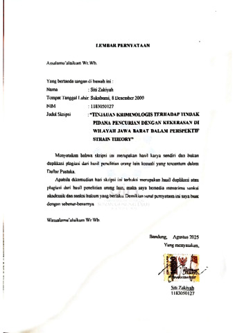 Zakiyah, Siti (2025) Tinjauan kriminologis terhadap tindak pidana pencurian dengan kekerasan di wilayah Jawa Barat dalam perspektif Strain Theory. Sarjana thesis, UIN Sunan Gunung Djati Bandung.
