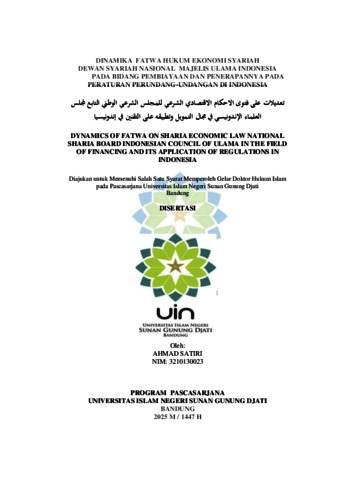 Satiri, Ahmad (2025) Dinamika fatwa hukum ekonomi syariah dewan syariah Nasional Majelis Ulama Indonesia pada bidang pembiayaan dan penerapannya pada peraturan perundang-undangan di Indonesia. Doktoral thesis, UIN Sunan Gunung Djati Bandung.