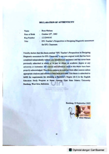 Mutiara, Resa (2025) EFL teachers perspective in designing diagnostic assessment for EFL classroom. Sarjana thesis, UIN Sunan Gunung Djati Bandung.