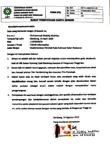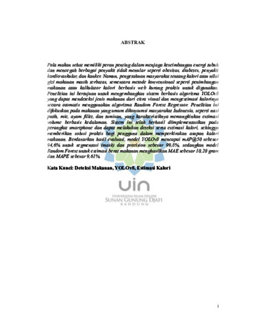 Mukhlas, Muhammad Shiddiq (2025) Implementasi YOLOv8 pada estimasi kalori makanan. Sarjana thesis, UIN Sunan Gunung Djati Bandung.