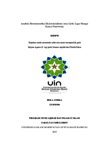 Andika, reka (2025) Analisis hermeneutika eksistensialisme atas lirik lagu Mangu karya Fourtwnty. Sarjana thesis, UIN Sunan Gunung Djati Bandung.