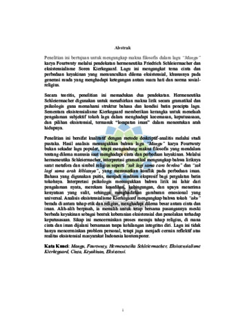 Analisis hermeneutika eksistensialisme atas lirik lagu Mangu karya Fourtwnty