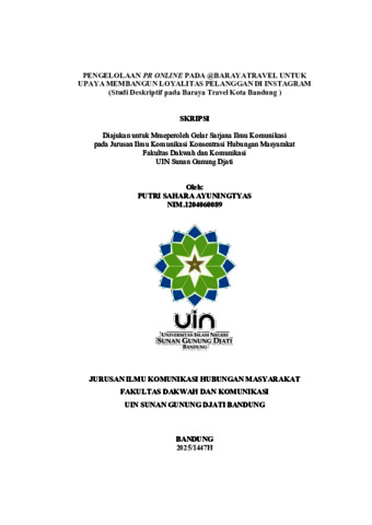 Ayuningtyas, Putri Sahara (2025) Pengelolaan PR online pada @barayatravel untuk upaya membangun loyalitas pelanggan di instagram. Sarjana thesis, UIN Sunan Gunung Djati Bandung.