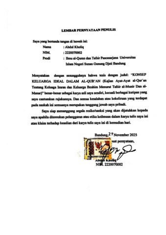 Kholiq, Abdul (2025) Konsep Keluarga Ideal dalam Al-Quean : Kajian Ayat-Ayat al-Qur`an Tentang Keluarga Imran dan Keluarga Ibrahim Menurut Tafsir al-Munir dan al-Manar. Masters thesis, UIN Sunan Gunung Djati Bandung.