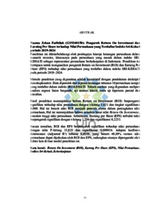 Pengaruh Return on Investment dan Earning Per Share terhadap nilai perusahaan yang terdaftar di indeks sri kehati periode 2019-2024