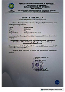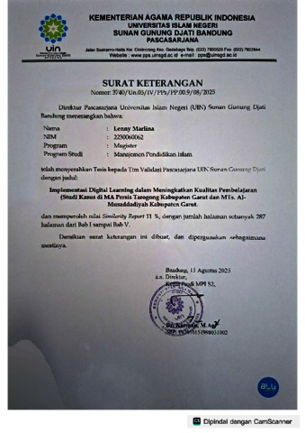 Marlina, Lenny (2025) Implementasi digital learning dalam meningkatkan kualitasi pembelajaran: Studi kasus di MA Persis Tarogong Kabupaten Garut dan MTs. Al-Musaddadiyah Kabupaten Garut. Masters thesis, UIN Sunan Gunung Djati Bandung.