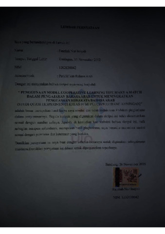 Inayah, Fauziah Nur (2025) Penggunaan model Kooperatif Learning tipe Make A Match dalam pembelajaran bahasa Arab untuk meningkatkan penguasaan kosakata bahasa Arab: Quasi eksperimen di kelas IV MI PUI Ciawigebang Kuningan. Sarjana thesis, UIN Sunan Gunung Djati Bandung.