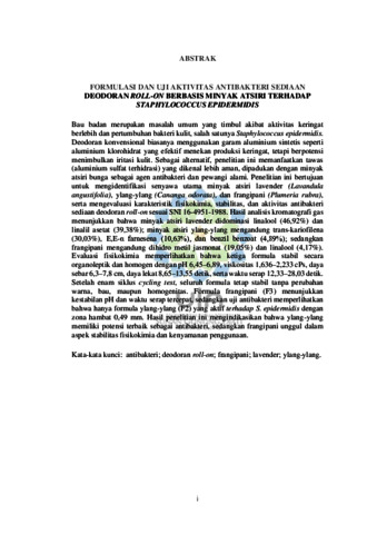Formulasi dan uji aktivitas antibakteri sediaan deodoran roll-on berbasis minyak atsiri staphylococcus epidremidis