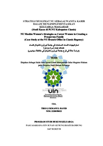 Strategi Muslimat NU sebagai wanita karir dalam mengimplementasikan Keluarga Maslahah: Studi kasus di PCNU Kabupaten Ciamis