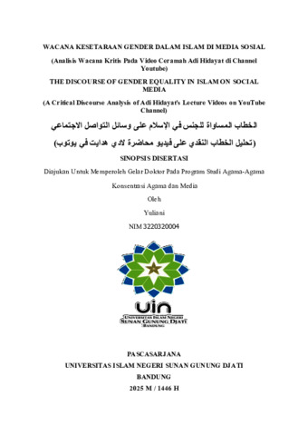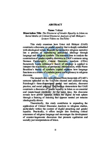 Yuliani, Yuliani (2025) Wacana kesetaraan gender dalam Islam di media sosial: Analisis wacana kritis pada video ceramah Adi Hidayat di channel Youtube. Doktoral thesis, UIN Sunan Gunung Djati Bandung.