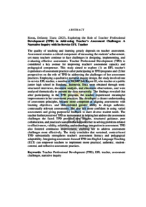 Uncontrolled Keywords: Teacher Professional Development (TPD); EFL teacher; Assessment Challenges; Narrative Inquiry