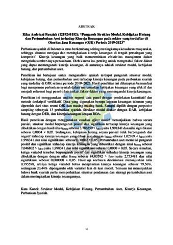 Pengaruh struktur modal, kebijakan hutang dan pertumbuhan aset terhadap kinerja keuangan pada sektor Perbankan Syariah yang terdaftar di Otoritas Jasa Keuangan (OJK) periode 2019-2023