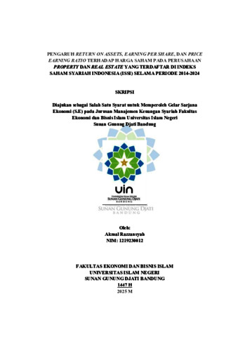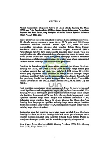 Pengaruh Return On Asset (ROA), Earning Per Share (EPS) dan Price Earning Ratio terhadap Harga Saham pada perusahaan Property dan Real Estate yang terdaftar di Indeks Saham Syariah Indonesia (ISSI) selama periode 2014-2024