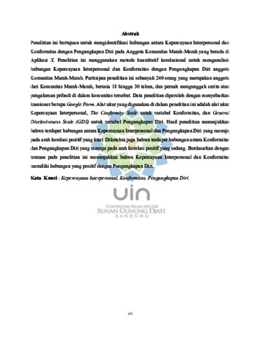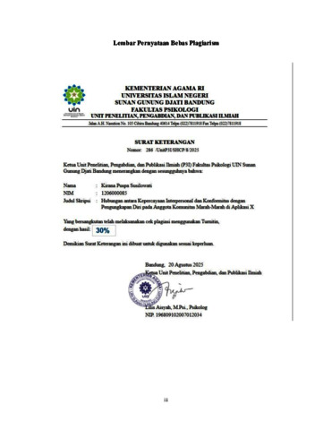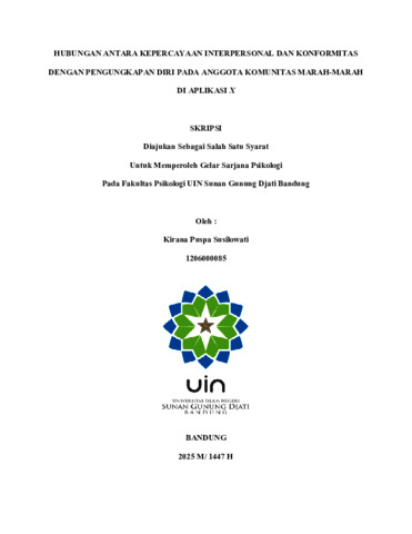 Susilowati, Kirana Puspa (2025) Hubungan antara kepercayaan interpersonal dan konformitas dengan pengungkapan diri pada anggota Komunitas Marah-Marah di aplikasi X. Sarjana thesis, UIN Sunan Gunung Djati Bandung.