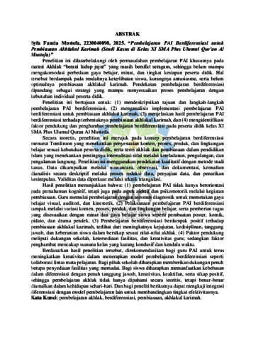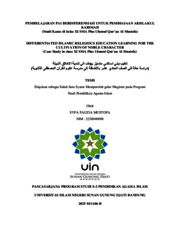 Mustofa, Syfa (2025) Pembelajaran PAI berdiferensiasi untuk pembiasaan akhlakul karimah: Studi kasus di kelas XI SMA Plus Ulumul Quran Al Mustofa. Masters thesis, UIN Sunan Gunung Djati Bandung.
