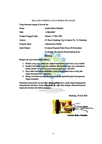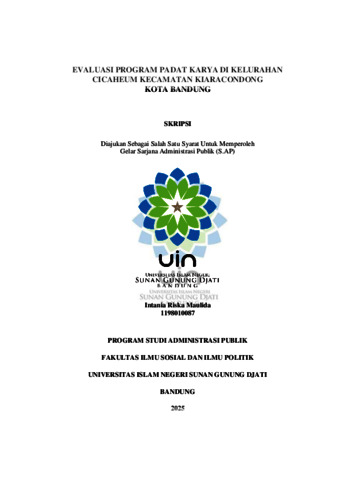 Maulida, Intania Riska (2025) Evaluasi program padat karya di Kelurahan Cicaheum Kecamatan Kiaracondong Kota Bandung. Sarjana thesis, UIN Sunan Gunung Djati Bandung.