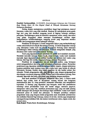 Nurinayatillah, Hanifah (2025) keseimbangan keluarga dan pekerjaan bagi wanita karir di era digital: Studi di wilayah Kecamatan Soreang Kabupaten Bandung. Sarjana thesis, UIN Sunan Gunung Djati Bandung.