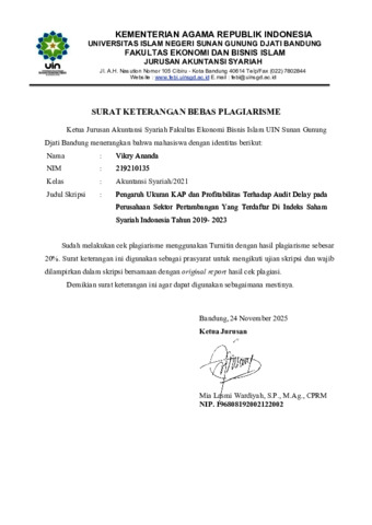 Ananda, Vikry (2025) Pengaruh ukuran kap dan profitabilitas terhadap Audit Delay pada perusahaan sektor pertambangan yang terdaftar di Indeks Saham Syariah Indonesia (ISSI) pada tahun 2019-2023. Sarjana thesis, UIN Sunan Gunung Djati Bandung.