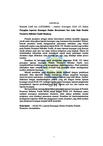 Analisis Penerapan ISAK 335 dalam penyajian laporan keuangan entitas berorientasi non laba pada Pondok Pesantren Miftahut Taufik Bandung
