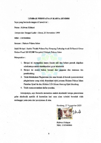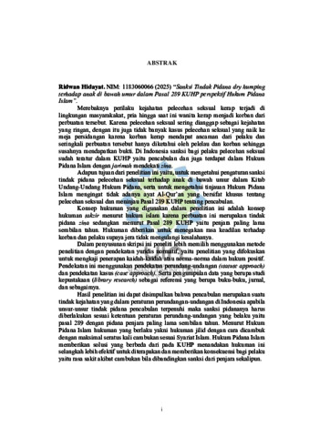 Hidayat, Ridwan (2025) Sanksi tindak pidana Dry Humping terhadap anak di bawah umur dalam Pasal 289 KUHP persfektif hukum pidana Islam. Sarjana thesis, UIN Sunan Gunung Djati Bandung.