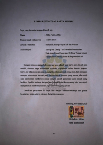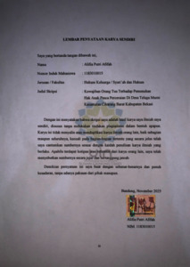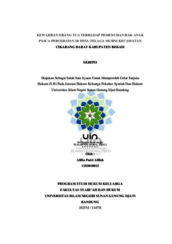 Afifah, Alifia Putri (2025) Kewajiban orang tua terhadap pemenuhan hak anak pasca perceraian di Desa Telaga Murni kecamatan Cikarang Barat kabupaten Bekasi. Sarjana thesis, UIN Sunan Gunung Djati Bandung.