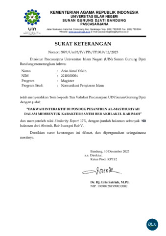 Yakin, Ario Ainal (2025) Dak’wah interaktif di Pondok Pesantren AL-Masthuriyah dalam membentuk karakter Santri berahlakul karimah. Masters thesis, UIN Sunan Gunung Djati Bandung.