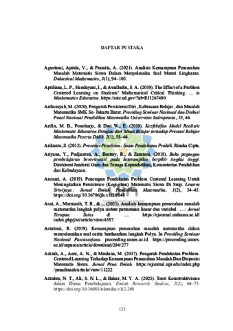 | Uncontrolled Keywords: | Problem-Centered Learning; Kemampuan Pemecahan Masalah Matematis; Self-Persistence |