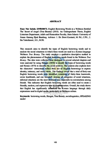 Indah, Fany Nur (2025) English borrowing words in a Webtoon entitled The Secret of Angel (True Beauty) (2018). Sarjana thesis, UIN Sunan Gunung Djati Bandung.