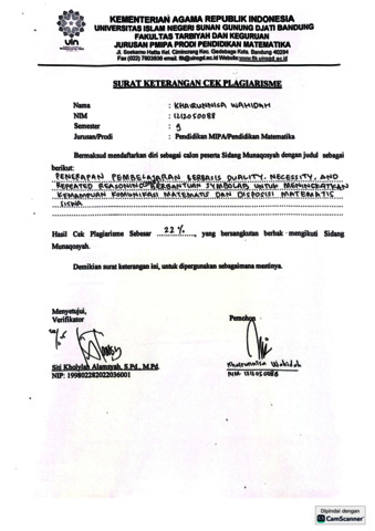 Wahidah, Khairunnisa (2025) Penerapan pembelajaran Berbasis Duality, Necessity and Repeated Reasoning (DNR) berbantuan symbolab untuk meningkatkan kemampuan komunikasi matematis dan disposisi matematis siswa. Sarjana thesis, UIN Sunan Gunung Djati Bandung.