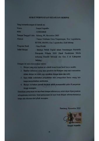 Aepudin, Saepul (2025) Strategi politik digital dalam pemenangan Reynaldy Putra pada Pilkada 2024: Studi pendekatan media terhadap pemilih milenial dan gen Z di Kabupaten Subang. Sarjana thesis, UIN Sunan Gunung Djati Bandung.