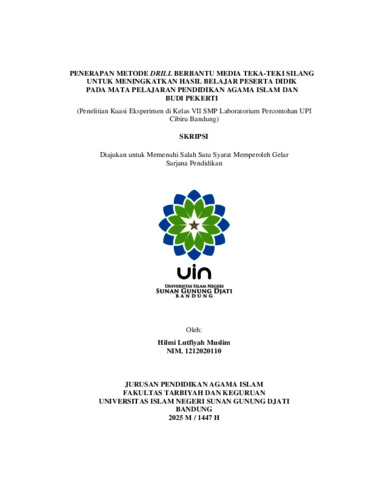 Muslim, Hilmi Lutfiyah (2025) Penerapan metode drill berbantu media teka- teki silang untuk meningkatkan hasil belajar Peserta Didik pada mata pelajaran Pendidikan Agama Islam dan Budi Pekerti: Penelitian kuasi eksperimen di kelas VII SMP Laboratorium Percontohan UPI Cibiru Bandung. Sarjana thesis, UIN Sunan Gunung Djati Bandung.