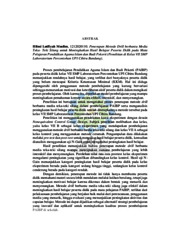 Proses pembelajaran Pendidikan Agama Islam dan Budi Pekerti (PAIBP) pada peserta didik kelas VII SMP Laboratorium Percontohan UPI Cibiru Bandung menunjukkan rendahnya hasil belajar, yang terlihat dari banyaknya peserta didik yang belum mencapai Kriteria Ketuntasan Minimal (KKM). Hal ini diduga dipengaruhi oleh penggunaan metode pembelajaran yang kurang bervariasi sehingga menurunkan motivasi dan keterlibatan aktif peserta didik dalam mengikuti proses pembelajaran. Oleh karena itu, diperlukan model pembelajaran yang mampu meningkatkan pemahaman konsep secara efektif, interaktif, dan menyenangkan. Penelitian ini bertujuan untuk mengetahui proses penerapan metode drill berbantu media teka-teki silang dalam pembelajaran PAIBP serta menganalisis peningkatan hasil belajar peserta didik setelah diterapkannya metode tersebut pada kelas VII SMP Laboratorium Percontohan UPI Cibiru Bandung. Penelitian ini menggunakan pendekatan kuasi eksperimen dengan desain Nonequivalent Control Group Design. Subjek penelitian melibatkan dua kelas, yaitu kelas VII B sebagai kelas eksperimen yang mendapatkan pembelajaran menggunakan metode drill berbantu media teka-teki silang dan kelas VII A sebagai kelas kontrol yang menggunakan metode ceramah. Pengumpulan data dilakukan melalui pre-test dan post-test untuk mengukur hasil belajar peserta didik, kemudian dianalisis menggunakan uji N-Gain untuk mengetahui peningkatan hasil belajar. Hasil penelitian menunjukkan bahwa penerapan metode drill berbantu media teka-teki silang mampu menciptakan suasana pembelajaran yang lebih interaktif dan menyenangkan. Perolehan nilai rata-rata posttest kelas eksperimen mengalami peningkatan yang signifikan dibandingkan kelas kontrol. Hasil uji N-Gain menunjukkan kategori peningkatan hasil belajar peserta didik pada kelas eksperimen berada pada kategori sedang hingga tinggi, sedangkan kelas kontrol cenderung berada pada kategori rendah. Dengan demikian, penerapan metode ini tidak hanya membantu peserta didik memahami materi secara lebih mendalam melalui latihan berulang, tetapi juga meningkatkan motivasi belajar karena dikemas dalam bentuk yang menarik dan menyenangkan. Metode drill berbantu media teka-teki silang juga efektif dalam meningkatkan hasil belajar peserta didik pada mata pelajaran PAIBP, terlihat dari pelaksanaan pembelajaran yang berjalan baik mulai dari perencanaan, penggunaan media yang menarik, hingga evaluasi yang menunjukkan peningkatan aktivitas dan capaian belajar. Metode ini dapat dijadikan sebagai alternatif strategi pembelajaran yang inovatif dan aplikatif untuk meningkatkan kualitas proses pembelajaran PAIBP di sekolah.
