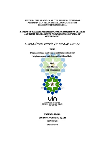 Mulyana, Dedi (2025) Studi hadis larangan kritik terhadap pemimpin dan relevansinya dengan sistem pemerintahan Indonesia. Masters thesis, UIN Sunan Gunung Djati Bandung.
