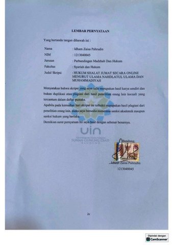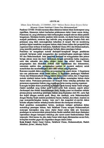 Pahrudin, Idham Zaisa (2025) Hukum shalat jumat secara online menurut Ulama Nahdlatul Ulama dan Muhammadiyah. Sarjana thesis, UIN Sunan Gunung Djati Bandung.