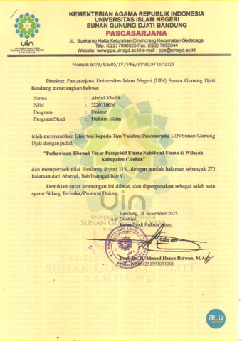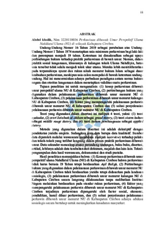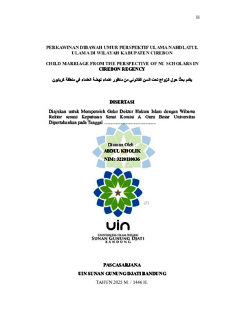 Kholik, Abdul (2025) Perkawinan dibawah umur perspektif Ulama Nahldatul Ulama (NU) di wilayah Kabupaten Cirebon. Doktoral thesis, UIN Sunan Gunung Djati Bandung.