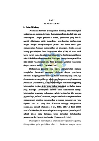 | Uncontrolled Keywords: | Problem Based Learning; Keterampilan Berpikir Kritis; Komik Digital; Keanekaragaman Hayati |