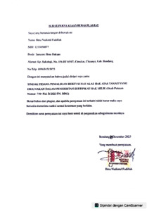 Fadillah, Ilma Nadiatul (2025) Tindak pidana pemalsuan bukti surat alas hak atas tanah yang digunakan dalam penerbitan sertipikat hak milik: Studi putusan nomor : 750/pid.B/2023/PN.BDG. Sarjana thesis, UIN Sunan Gunung Djati Bandung.